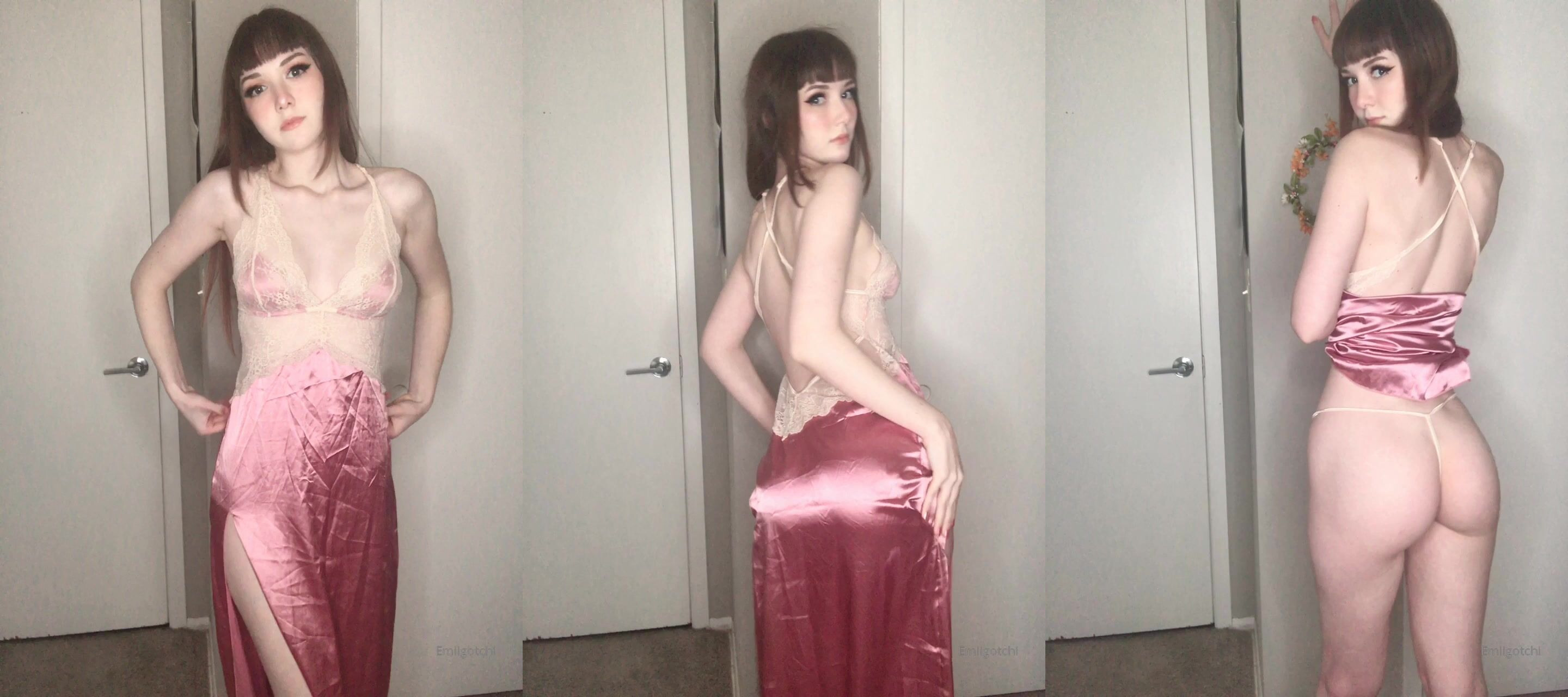 Emi teases in satin dress & thong