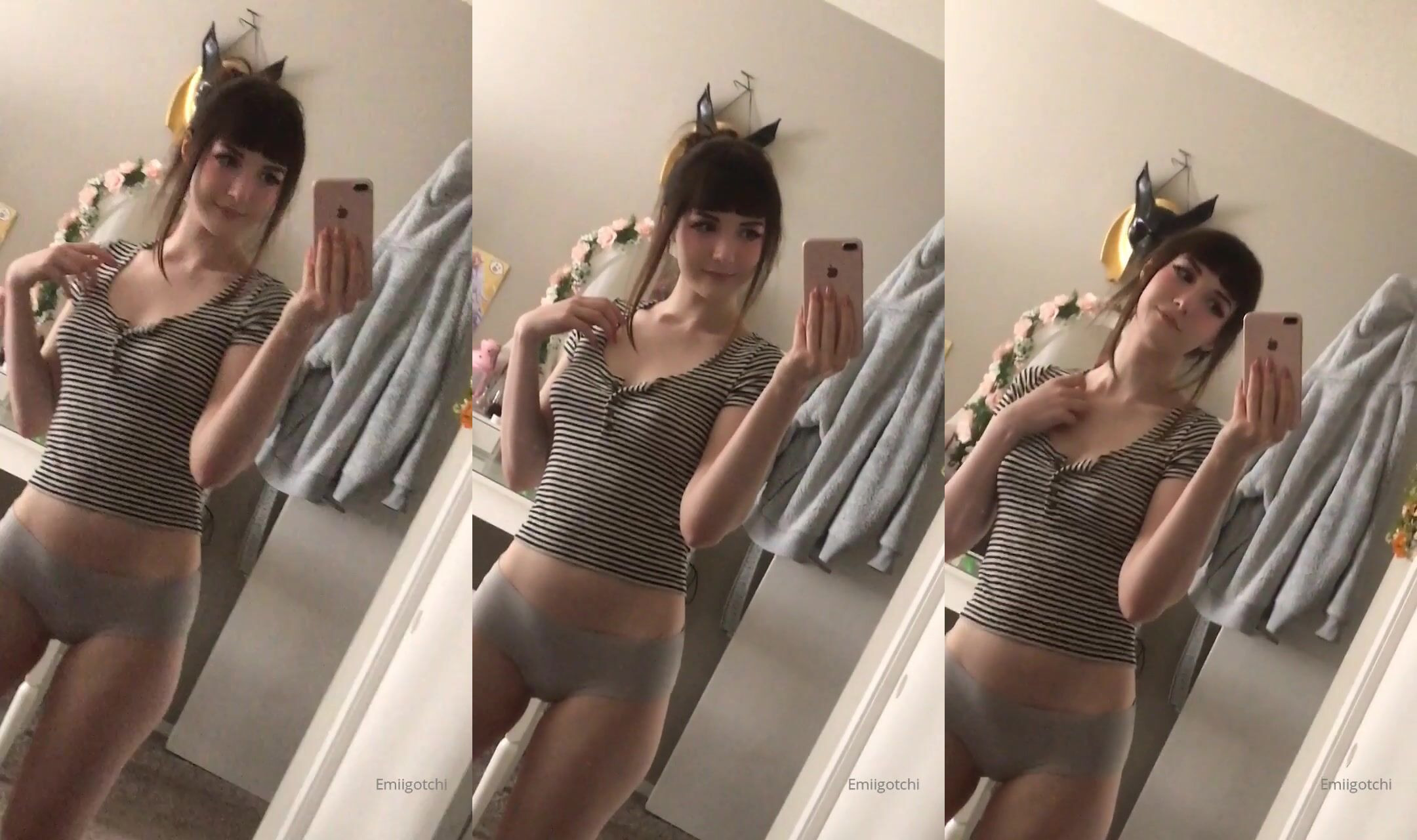 Emi admires herself in the mirror