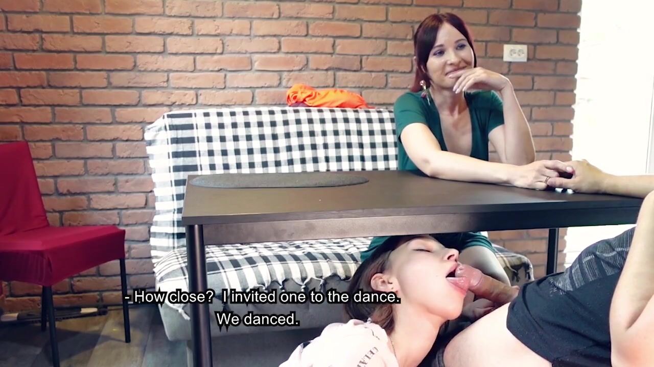 Jeny Smith - Stepmom seduces her stepson while stepsister sucks him under the table