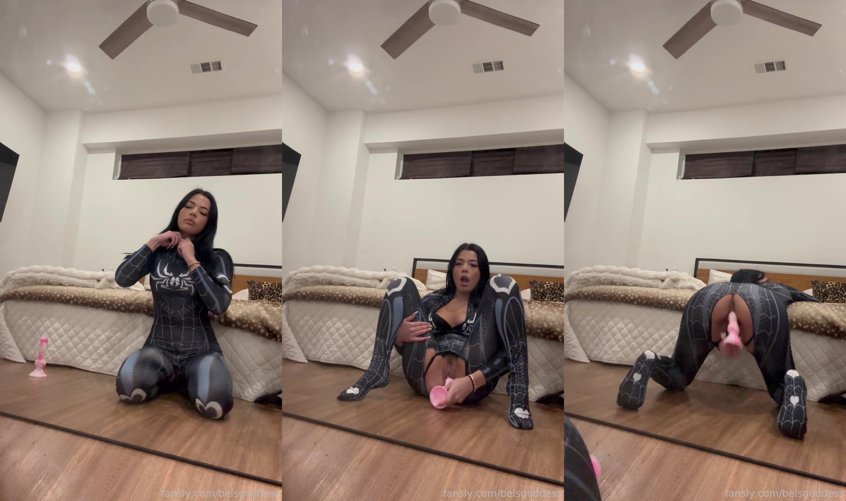 Bella sexy spider woman mirror dildo solo