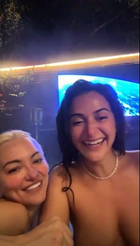 «Looks like a lesbian thing going on! They are feeling out one another. Playing with each other tits. I wonder if they played with each other's kitty?? And did oral on each other??? The fake blonde looks like gravity is starting to take over and getting some cellulite om her. If she has children, she will look like a shape of a football. Looks like she has a very big ass. And it will only get bigger as age and having kids will do that. And the fake blondes' boobs look is starting to sag. Be down around her belly button by the time she is 50 or so.»