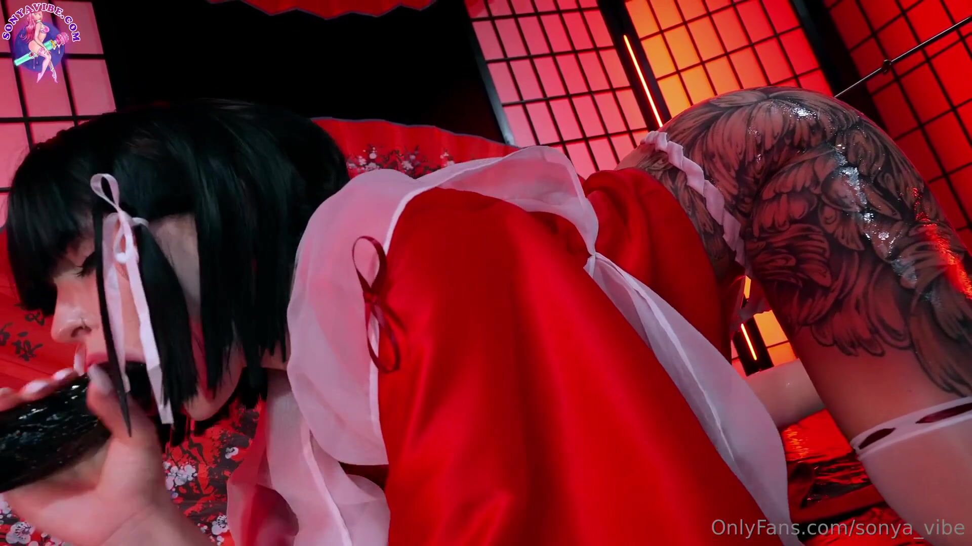 Sonya Vibe - Red Latex Girl Fucks Her Creamy Holes