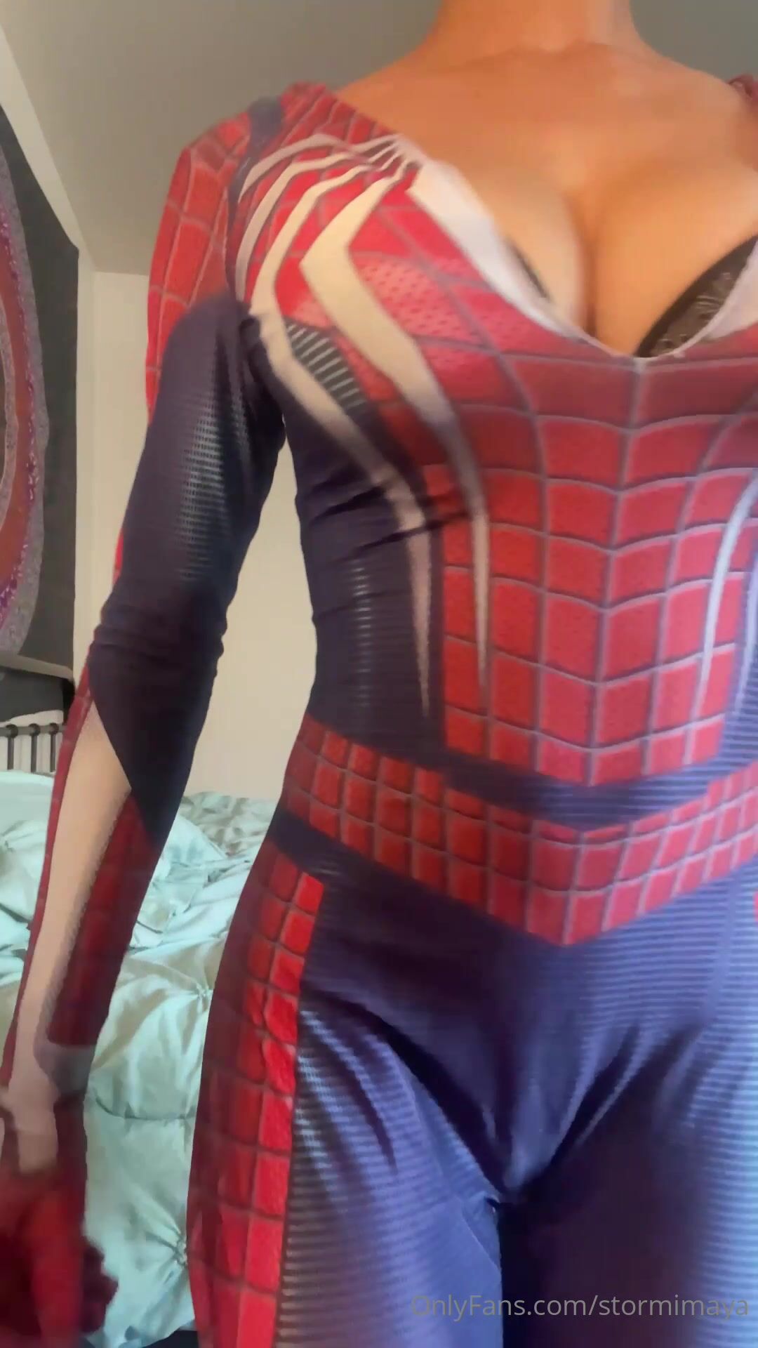 Stormi Maya - Spiderman Cosplay Striptease, Spreading & Masturbation