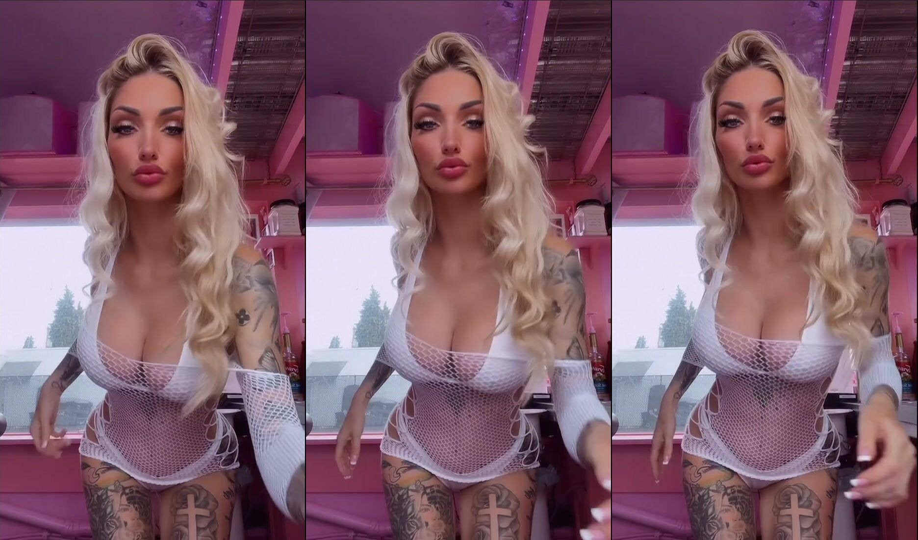 Irina Sivalnaya in transparent lingerie shows her tight holes