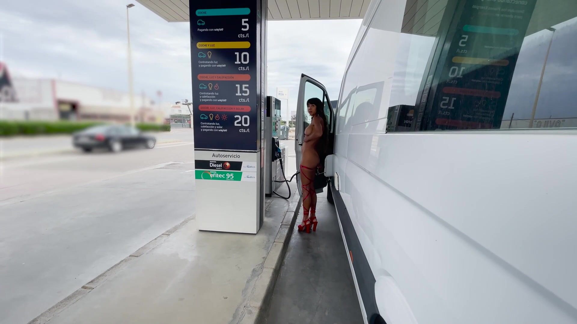 DaringKiara Pumping And Paying Gas Naked In Public Gas Station