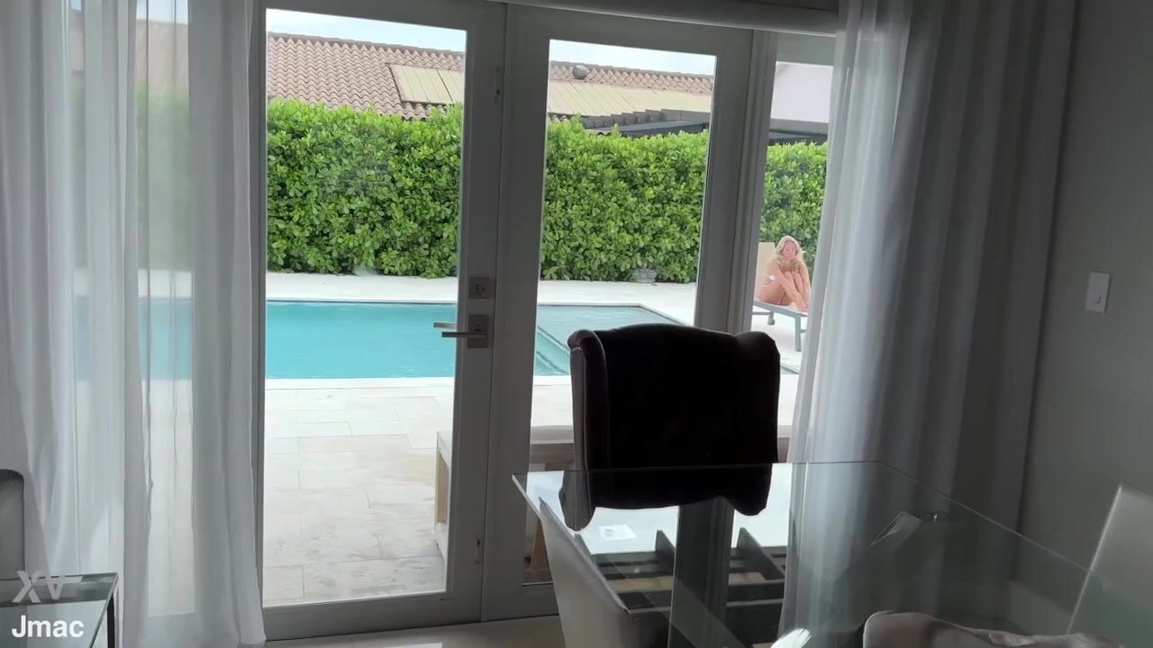 Rianna sexy blonde pussy play in skirt on balcony